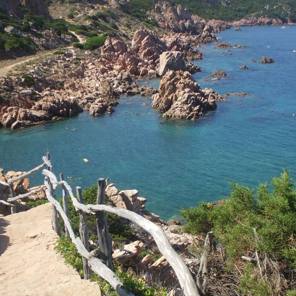 After reaching Costa Paradiso along the road to Castelsardo, with a walk of about 15 minutes, you will reach the sea through a trail leading to Li Cossi beach. The first wonder of this path will be the cove facing you; it will surprise you with its shades obtained from the red trachyte and emerald sea rocks.